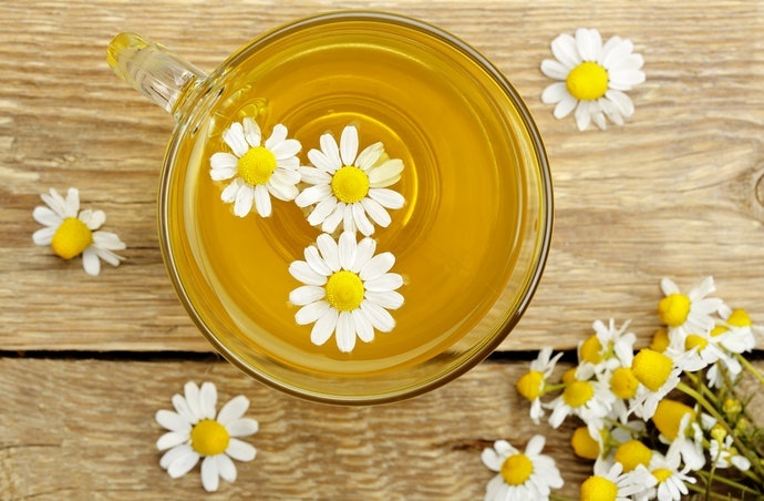 Hoa cúc giúp giữ ẩm và làm mềm tóc, làm mềm và giúp mái tóc bóng mượt. Thành phần có chamomile giúp chống gàu, làm dịu da đầu bị kích thích, giảm kích ứng và ngứa liên quan. Bạn chuẩn bị một túi trà hoa cúc và 4 muỗng soap (xà phòng từ dầu dừa hoặc dầu cọ), trộn các chất này với nhau thành hỗn hợp đặc sệt. Sau đó gội đầu với hỗn hợp này thường xuyên mỗi ngày