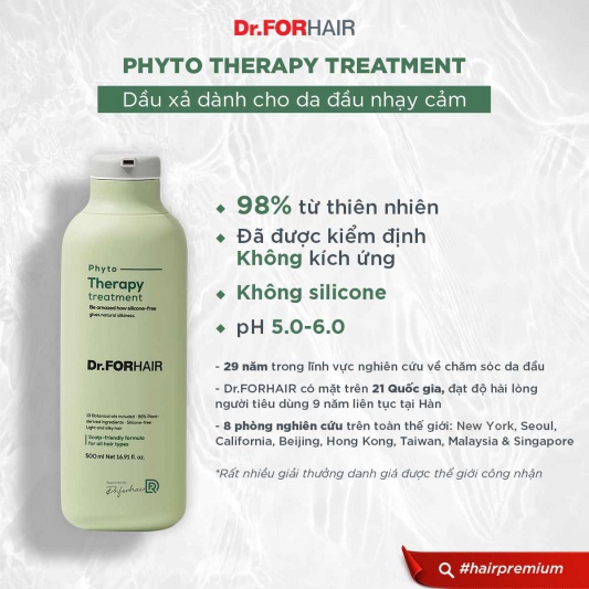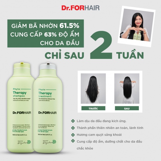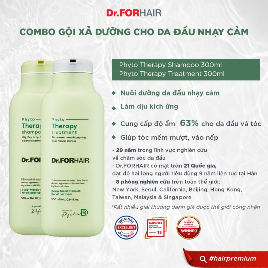 Bộ gội xả dưỡng cho da đầu nhạy cảm Dr.FORHAIR PHYTO THERAPY SHAMPOO x PHYTO THERAPY TREATMENT