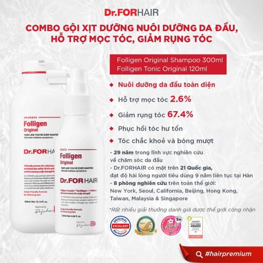 Bộ gội xịt dưỡng nuôi dưỡng da đầu, hỗ trợ mọc tóc, giảm rụng tóc Dr.FORHAIR FOLLIGEN ORIGINAL x FOLLIGEN TONIC ORIGINAL
