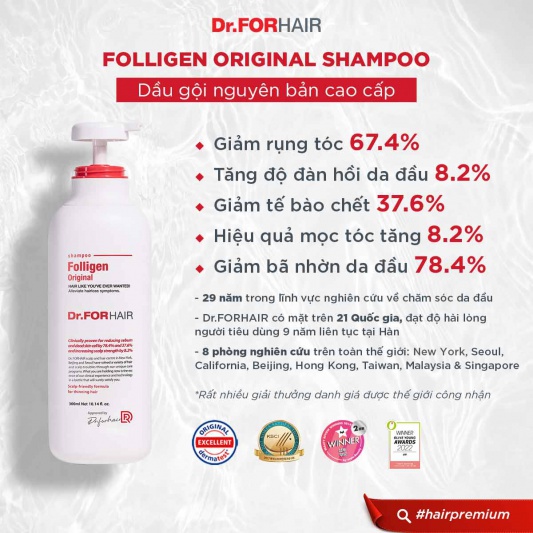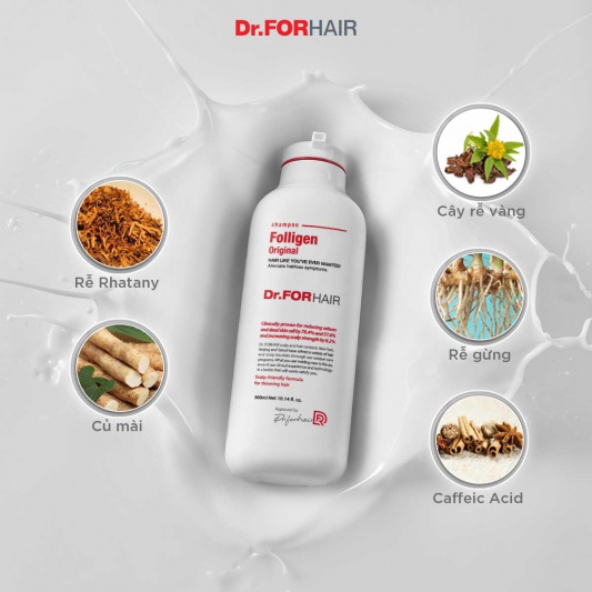 Dầu gội nguyên bản cao cấp, chăm sóc da đầu, hỗ trợ mọc tóc Dr.FORHAIR FOLLIGEN ORIGINAL 300ml