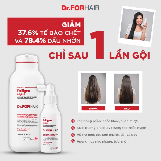 1. Dầu gội Dr.FORHAIR Folligen Original với công dụng chính là nuôi dưỡng da đầu, giúp giải quyết các vấn đề da đầu một cách. Giúp làm sạch da đầu, hỗ trợ mọc tóc, giảm tình trạng gãy rụng, phục hồi nang tóc từ sâu bên trong với các thành phần như: Panthenol, Biotin, Ceramide NP, Zinc Pyrithione, chiết xuất bạc hà, cây rễ vàng, v.v,...