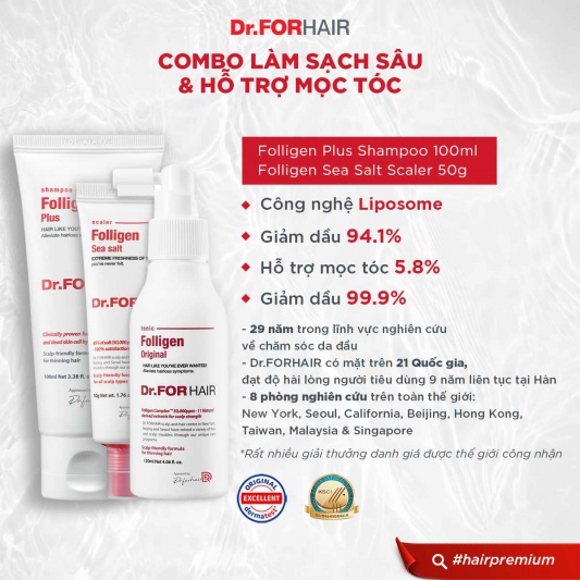 Bộ Mini chăm sóc tóc, giảm ngứa và mọc tóc Dr.FORHAIR FOLLIGEN PLUS, FOLLIGEN ORIGINAL TONIC và FOLLIGEN SEA SALT SCALER