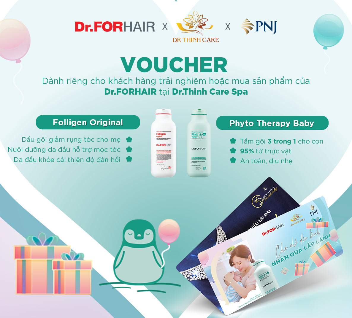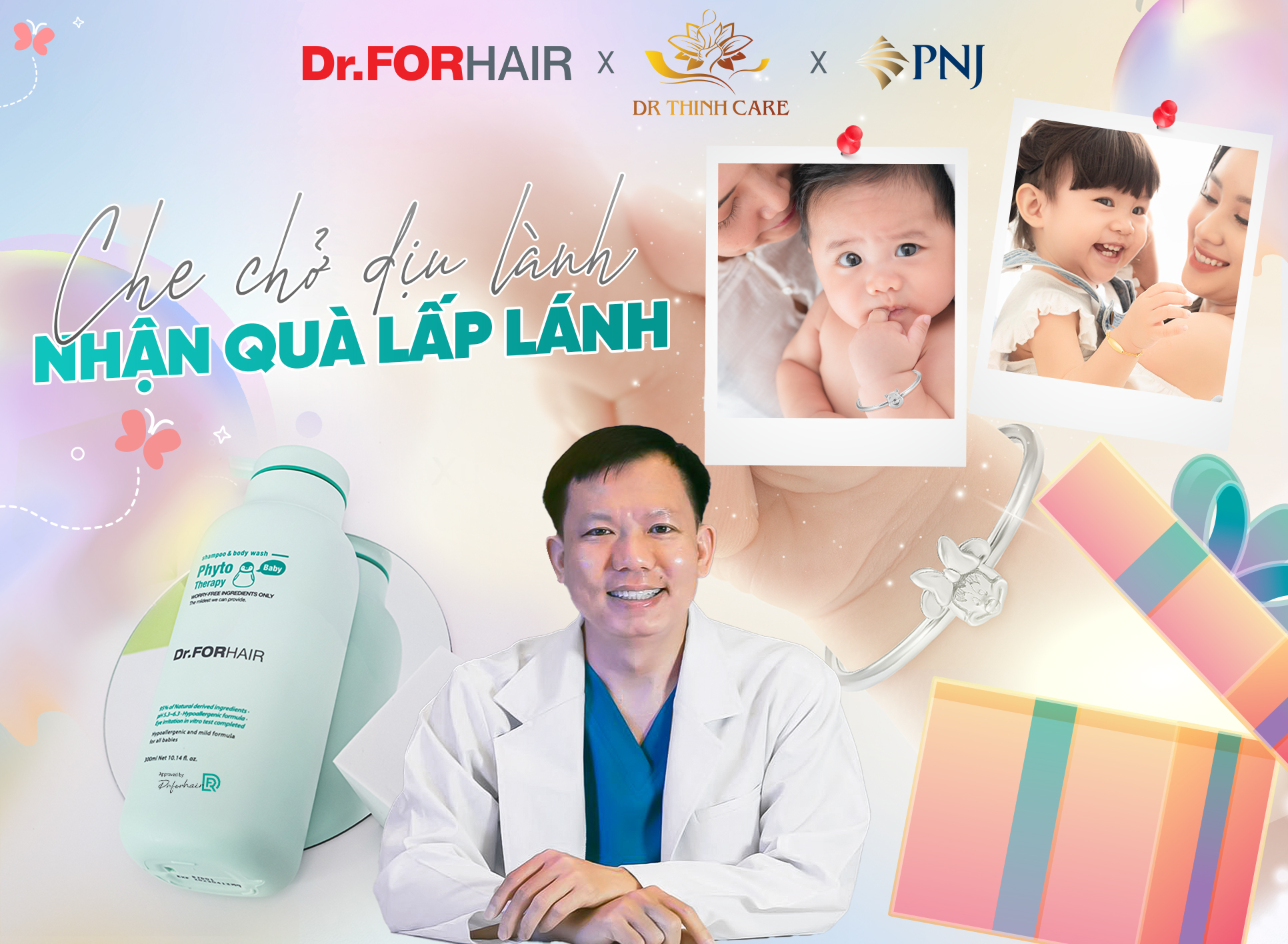 Thu về, Dr.FORHAIR triển khai chương trình ưu đãi đặc biệt kết hợp cùng Dr.Thinh Care Spa và PNJ - Đây không chỉ là một cách thể hiện sự trân trọng và quan tâm đối với mẹ và bé, mà còn thể hiện sự chia sẻ giữa thương hiệu với khách hàng.