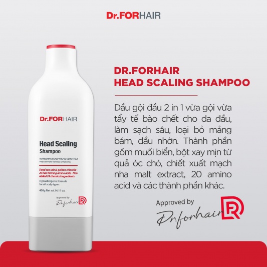 Dầu gội 2 in 1 Dr.FORHAIR Head Scaling Shampoo 100ml vừa là dầu gội vừa là tẩy tế bào chết nhẹ nhàng, giúp nuôi dưỡng da đầu, giảm rụng tóc, cải thiện các triệu chứng bạc tóc.