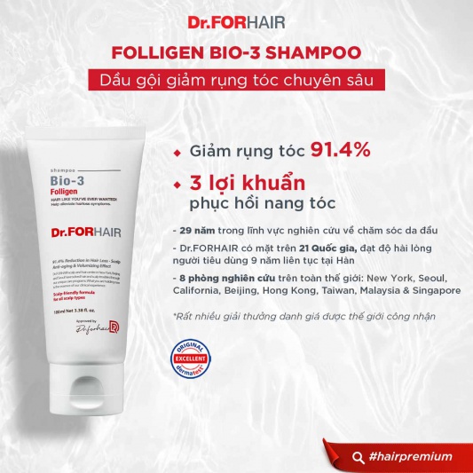 Dầu gội ngăn ngừa rụng tóc chuyên sâu Dr.FORHAIR Bio-3 Folligen 70ml