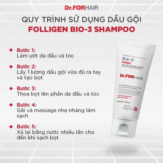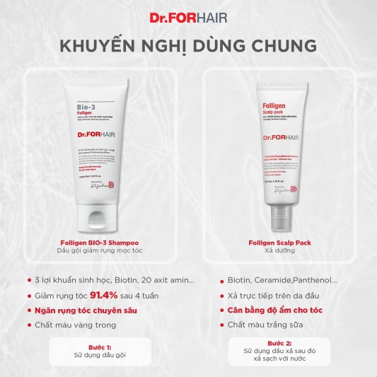 - Nên dùng chung với sản phẩm Dr. FORHAIR Folligen Scalp Pack để cân bằng độ ẩm sau khi gội, nuôi dưỡng da đầu và hỗ trợ mọc tóc, giảm rụng tóc hiệu quả.