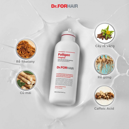 Dầu gội nguyên bản cao cấp, chăm sóc da đầu, hỗ trợ mọc tóc Dr.FORHAIR FOLLIGEN ORIGINAL 300ml