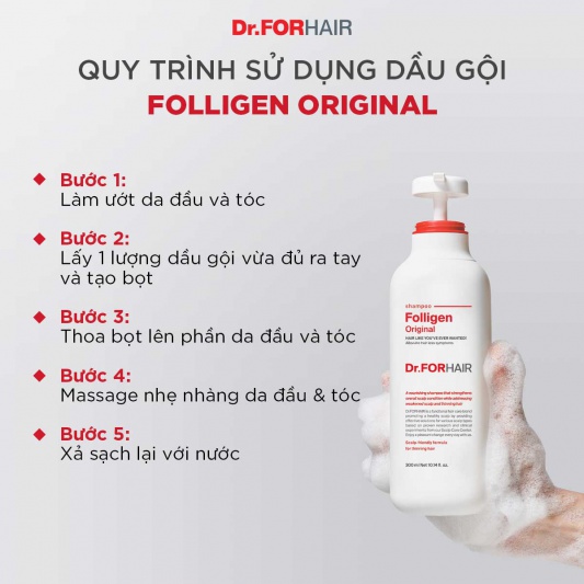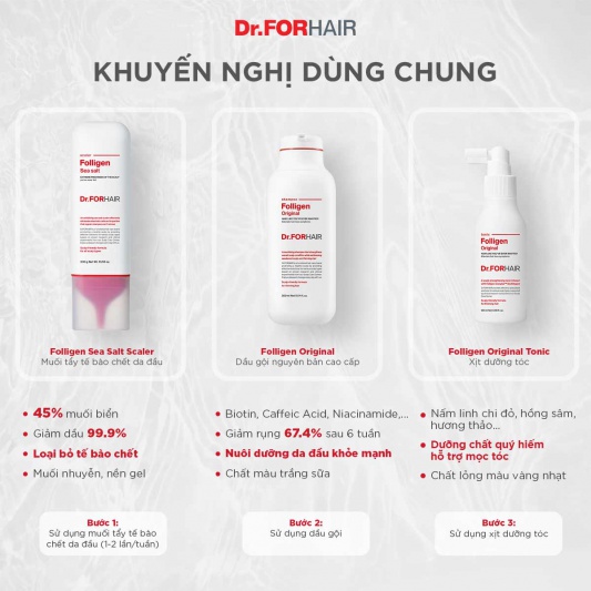 - Sản phẩm Dr.FORHAIR FOLLIGEN ORIGINAL SHAMPOO đạt hiệu quả tốt nhất khi kết hợp cùng Dr.FORHAIR SEA SALT SCALER và Dr.FORHAIR FOLLIGEN TONIC.