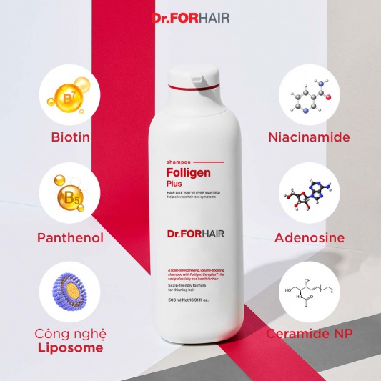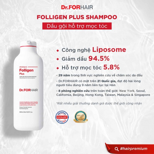 Dầu gội hỗ trợ mọc tóc, ngăn rụng tóc, kiểm soát bã nhờn Dr.FORHAIR FOLLIGEN PLUS 500ml
