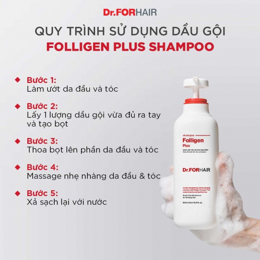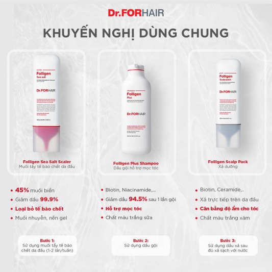 - Sản phẩm Dr.FORHAIR FOLLIGEN PLUS SHAMPOO đạt hiệu quả tốt nhất khi kết hợp cùng muối tẩy tế bào chết Dr.FORHAIR FOLLIGEN SEA SALT SCALER và xả dưỡng cho da đầu Dr.FORHAIR FOLLIGEN SCALP PACK.