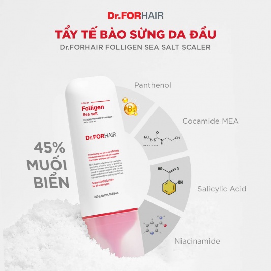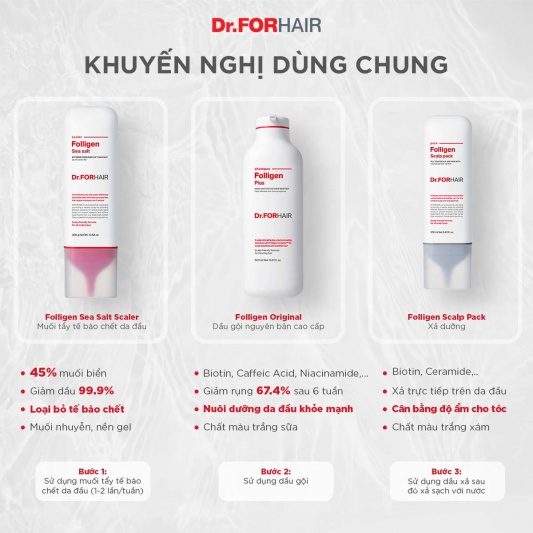Muối tẩy tế bào chết Folligen Sea Salt Scaler có thể kết hợp dùng cùng Sản phẩm Dr.FORHAIR FOLLIGEN PLUS SHAMPOO và Dr.FORHAIR FOLLIGEN SCALP PACK để đạt hiệu quả mọc tóc tốt nhất.